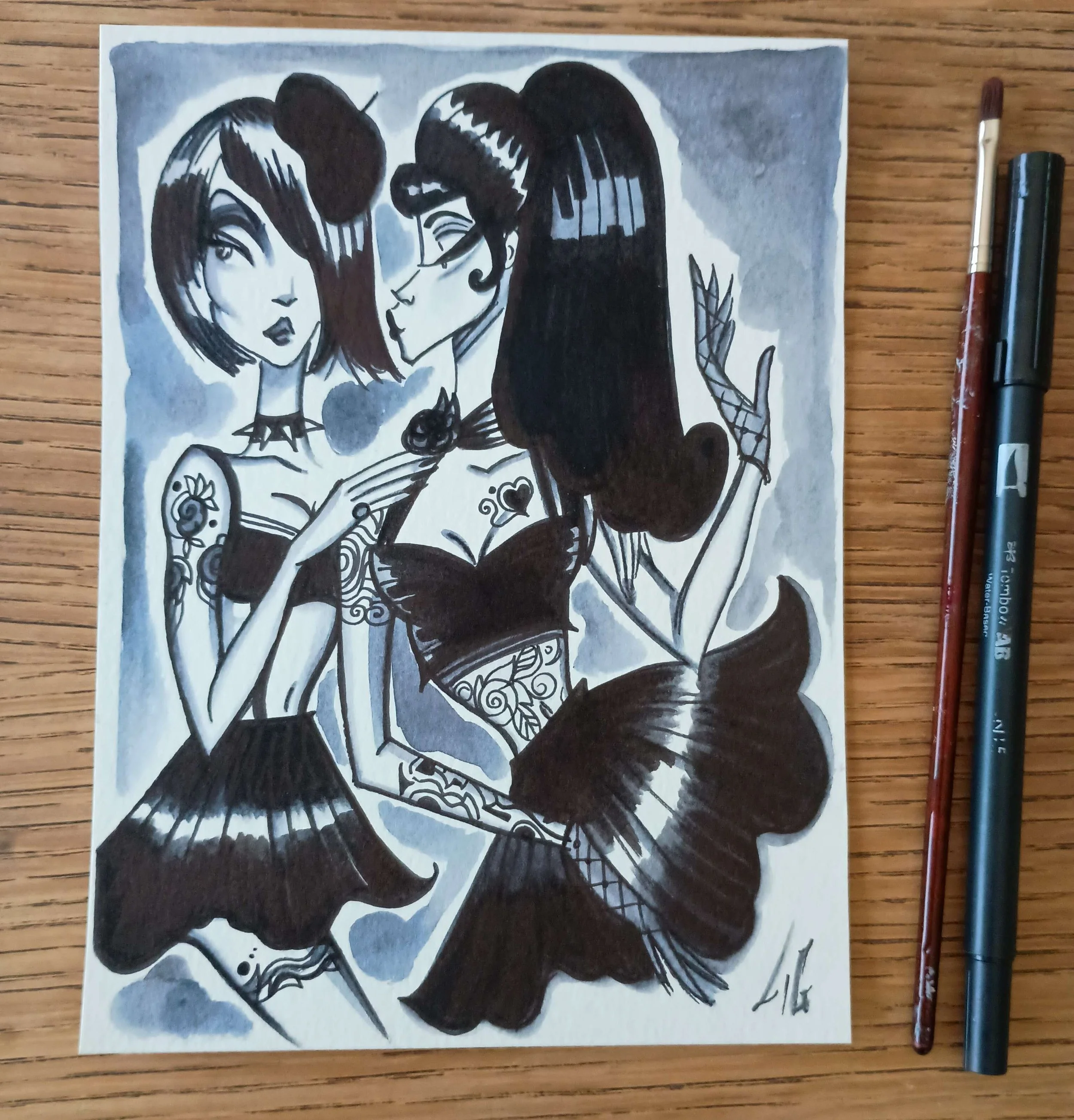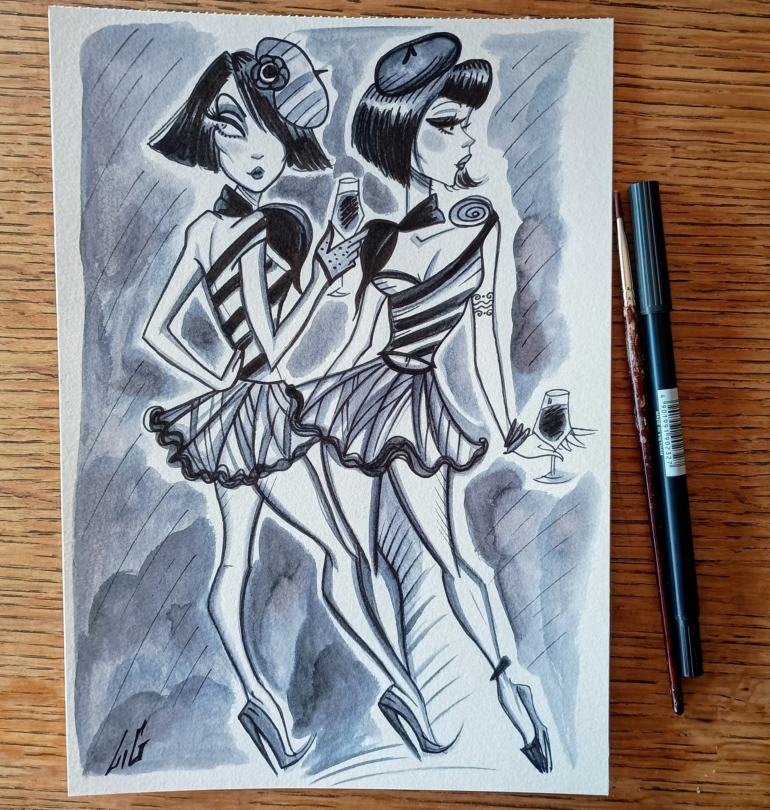 "High heels sisters" 21x28cm -SOLD- (vendu)